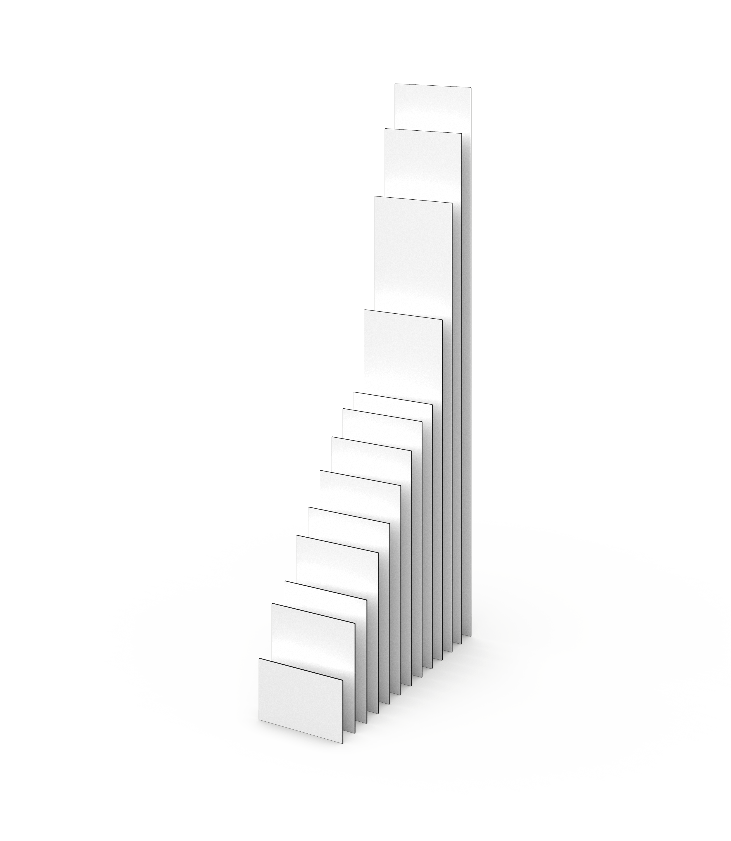 Kompakt verdichtete, schwarz eingefärbte Faserplatte 6,4 mm; Dekor schwarz oder weiß; schwer entflammbar; Kanten gefast