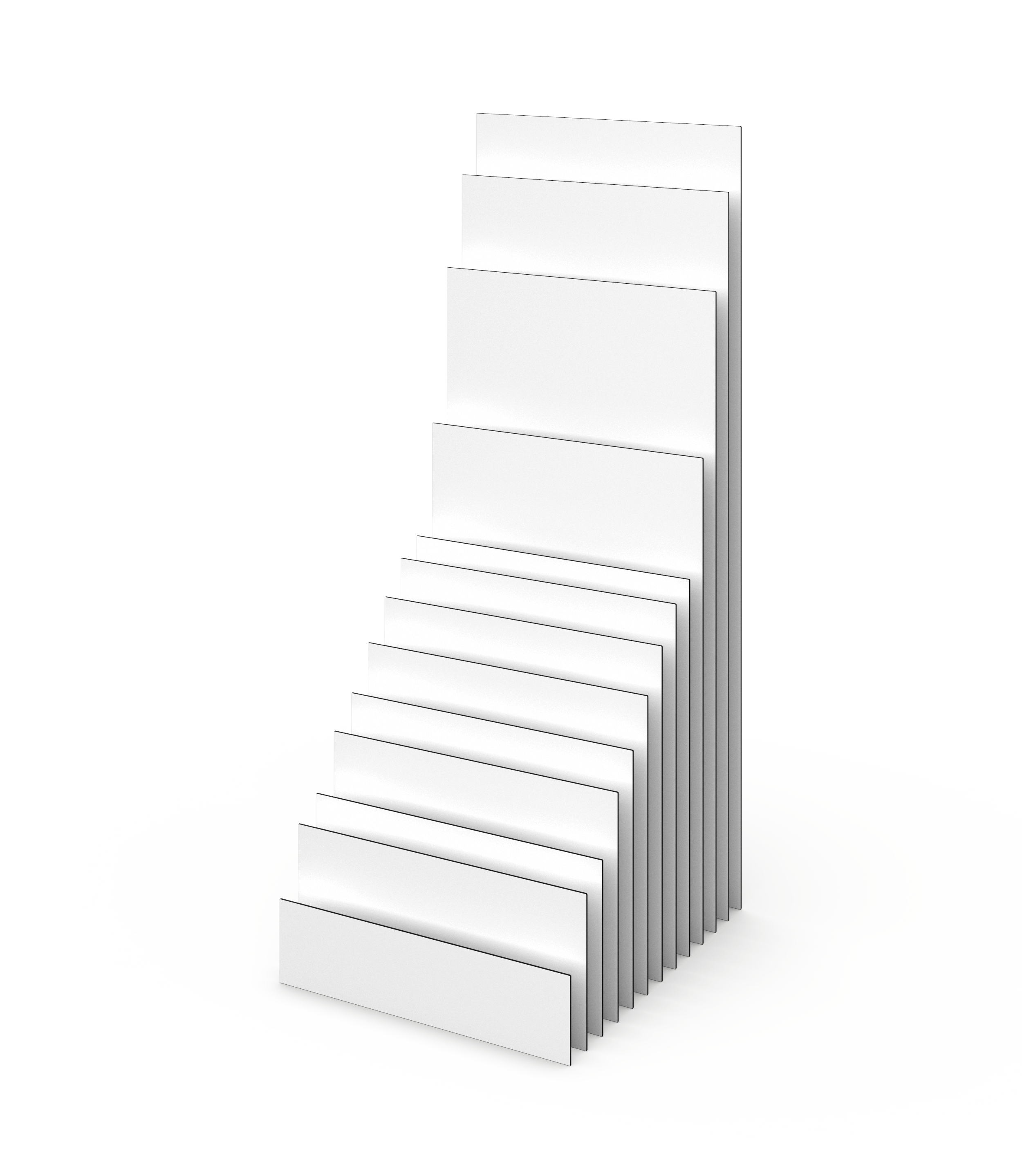 Kompakt verdichtete, schwarz eingefärbte Faserplatte 6,4 mm; Dekor schwarz oder weiß; schwer entflammbar; Kanten gefast