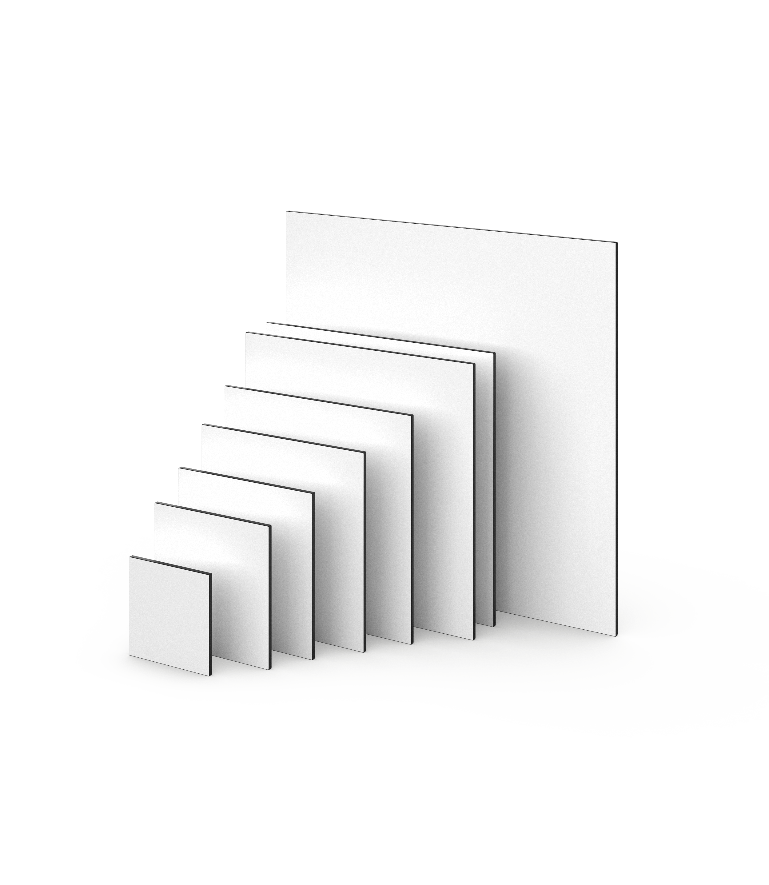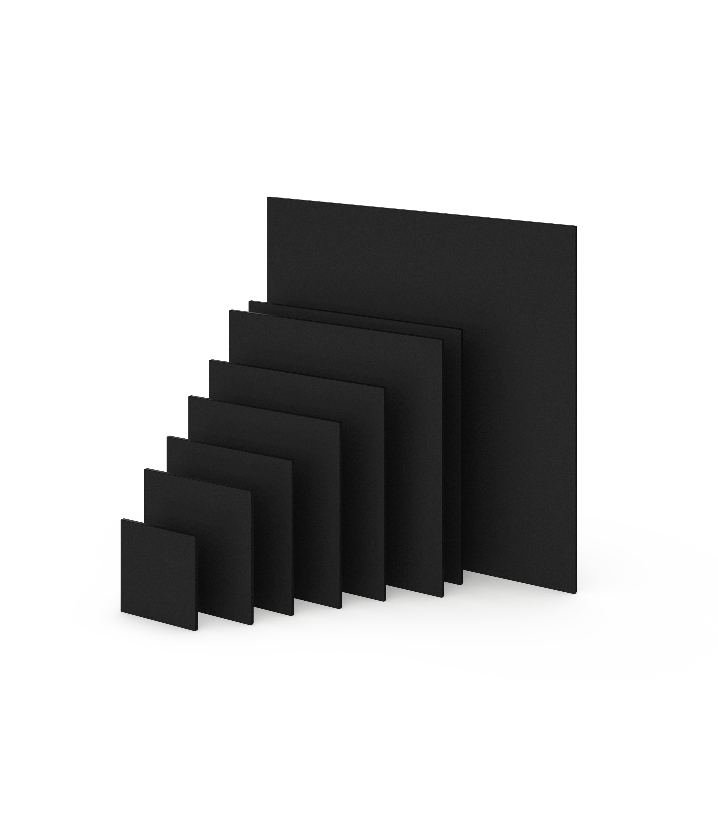 Kompakt verdichtete, schwarz eingefärbte Faserplatte 6,4 mm; Dekor schwarz oder weiß; schwer entflammbar; Kanten gefast