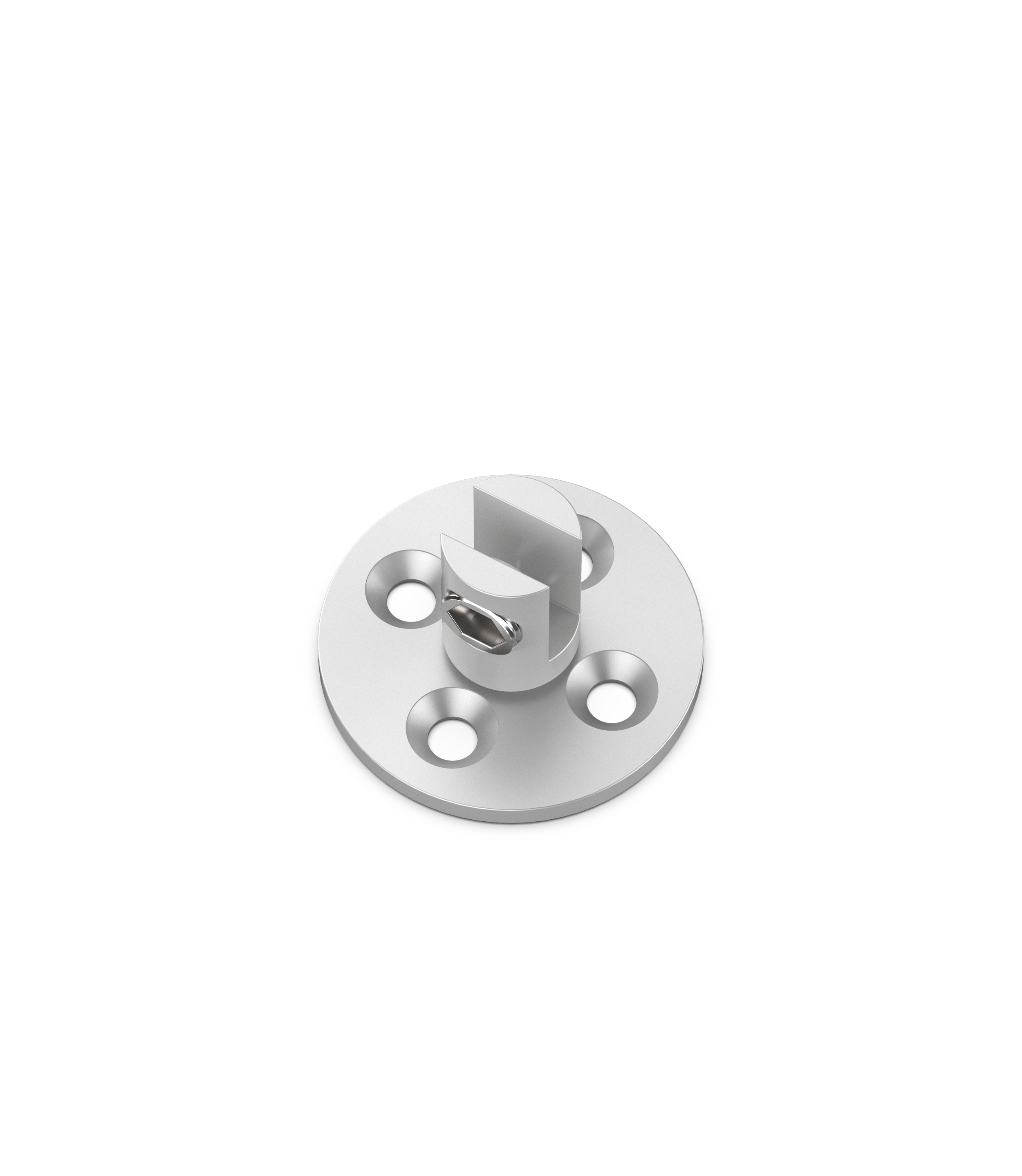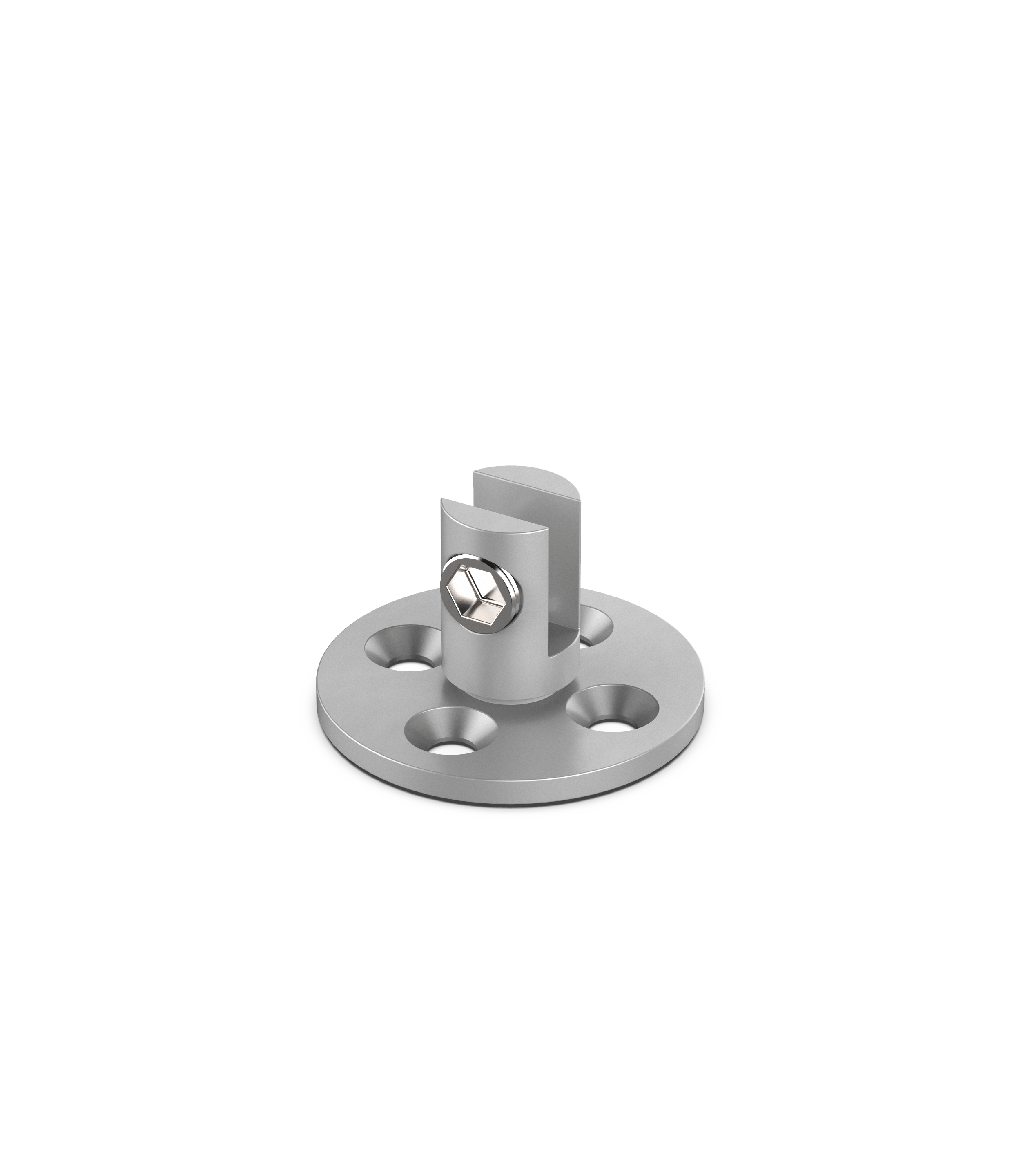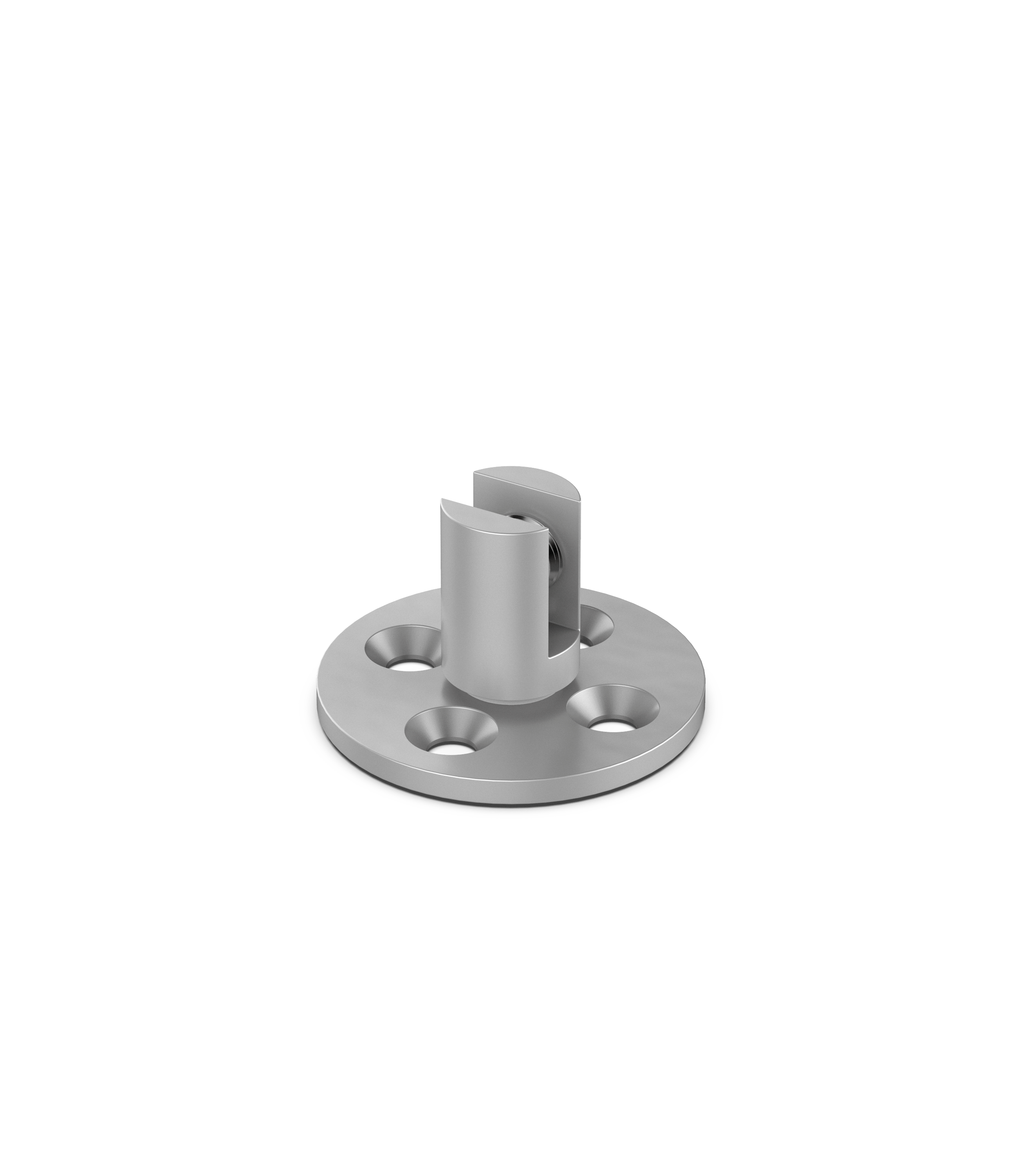 für Plattendicken bis 7 mm, ø 16 mm, M10 Inbus-Klemmschraube, Flanschplatte aus 3 mm Aluminium mit Senkbohrungen zum Anschrauben an Spanplatten o.ä., silber