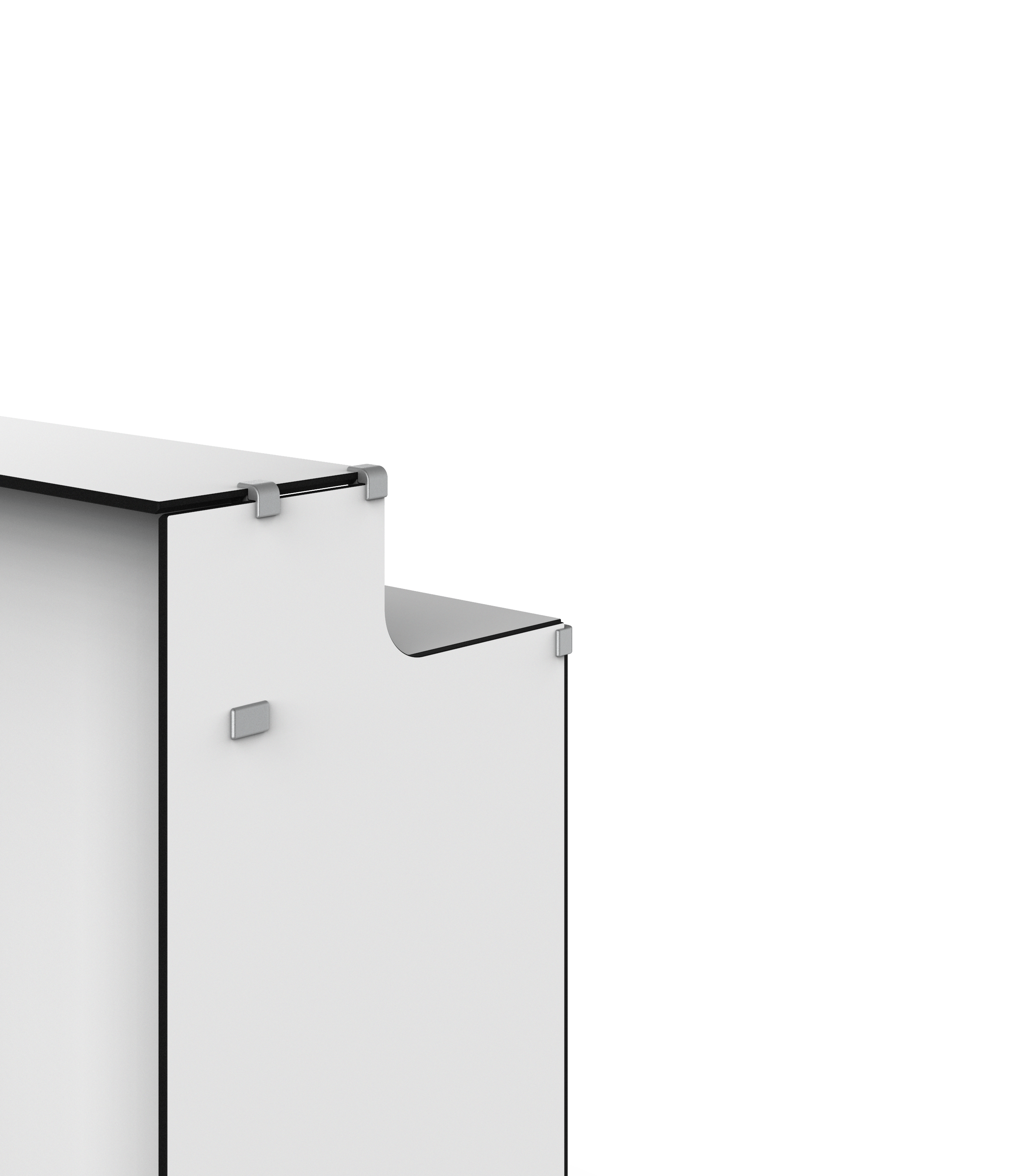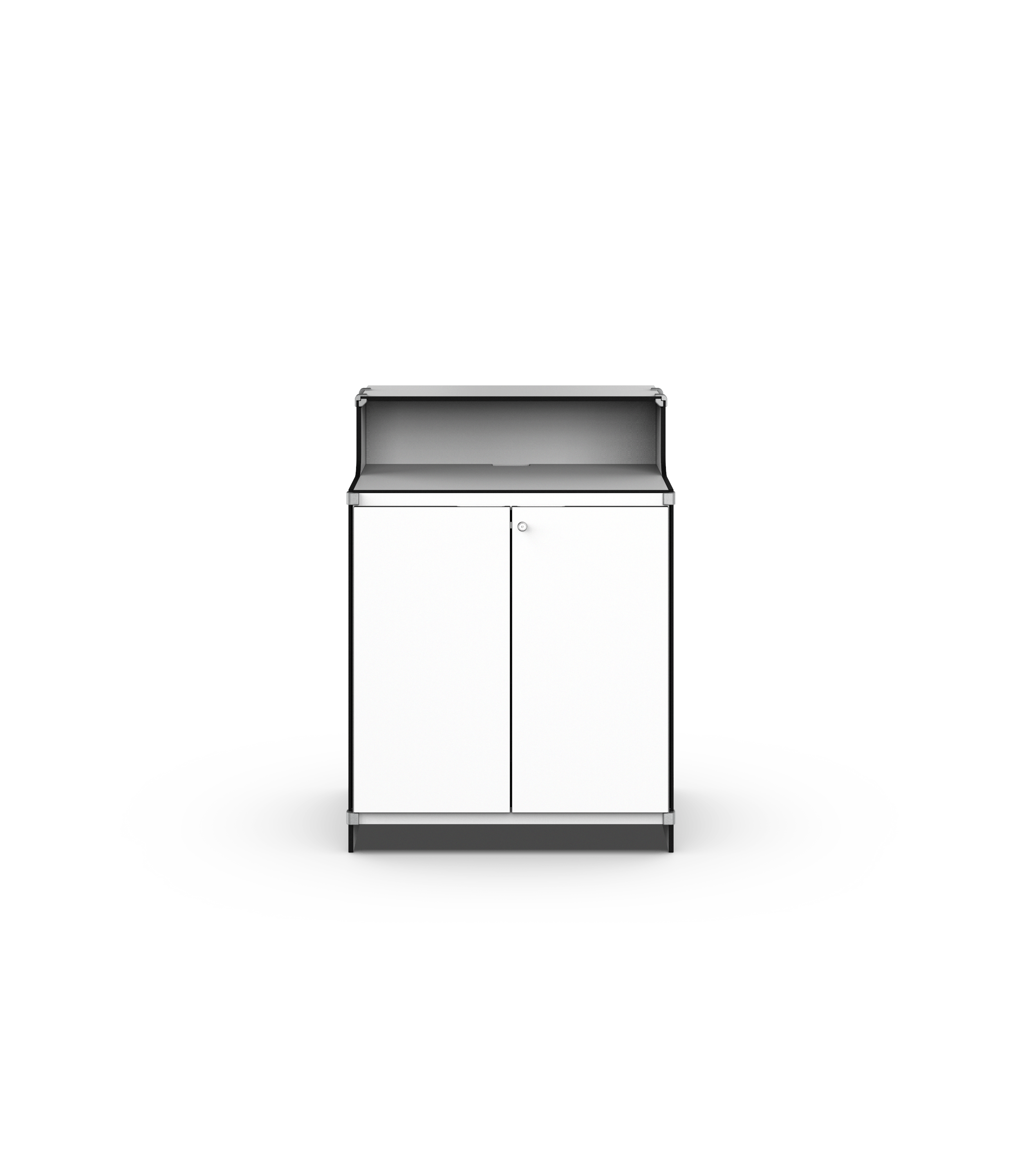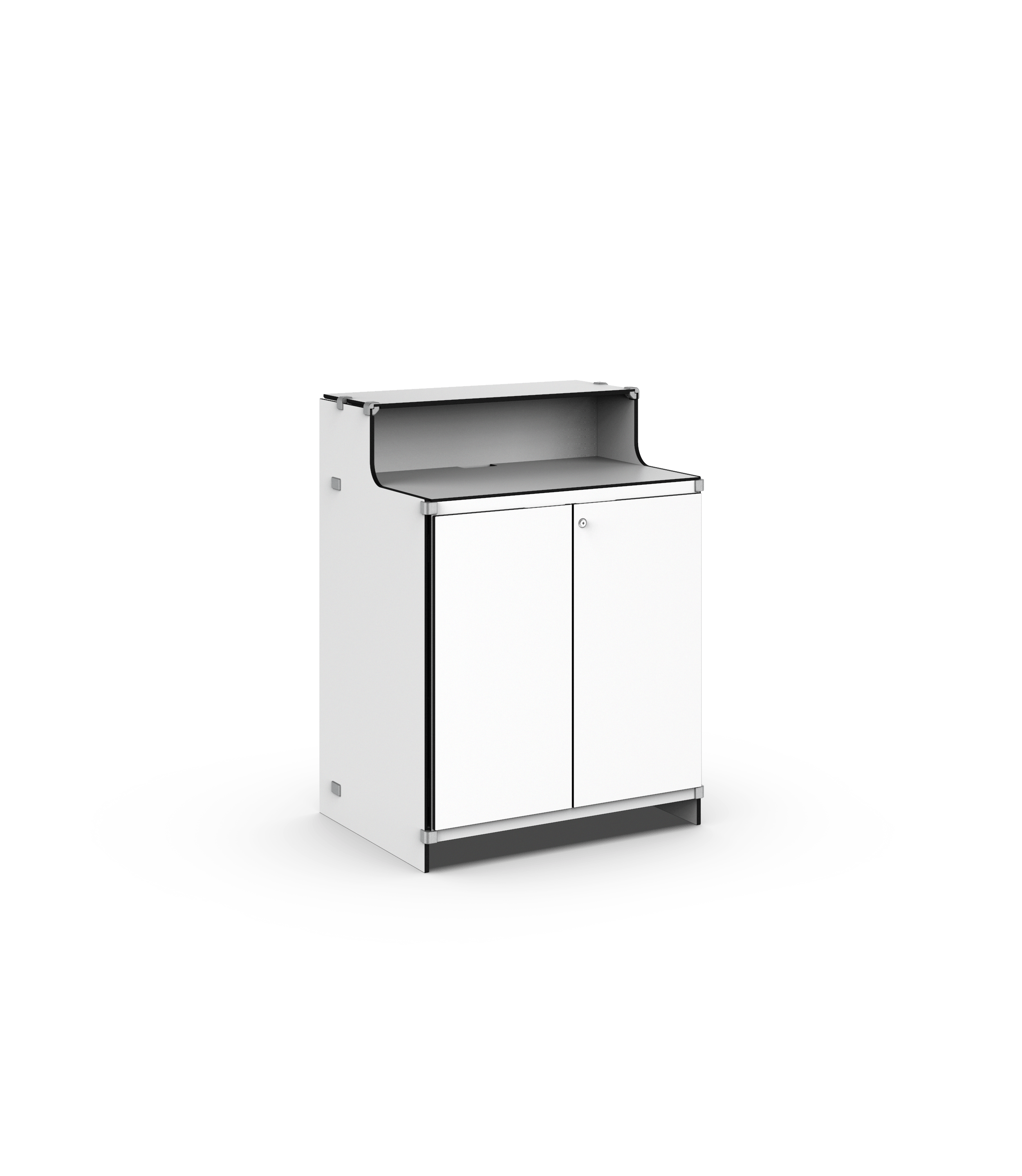 Theke mit Türen gefällig? Der Counter VI 800 ist dank der Kabelführungen und dem flexiblen Stauraum sehr funktional — außerdem optisch attraktiv. So kann sich das Produkt positiv auf den Kundenkontakt auswirken.