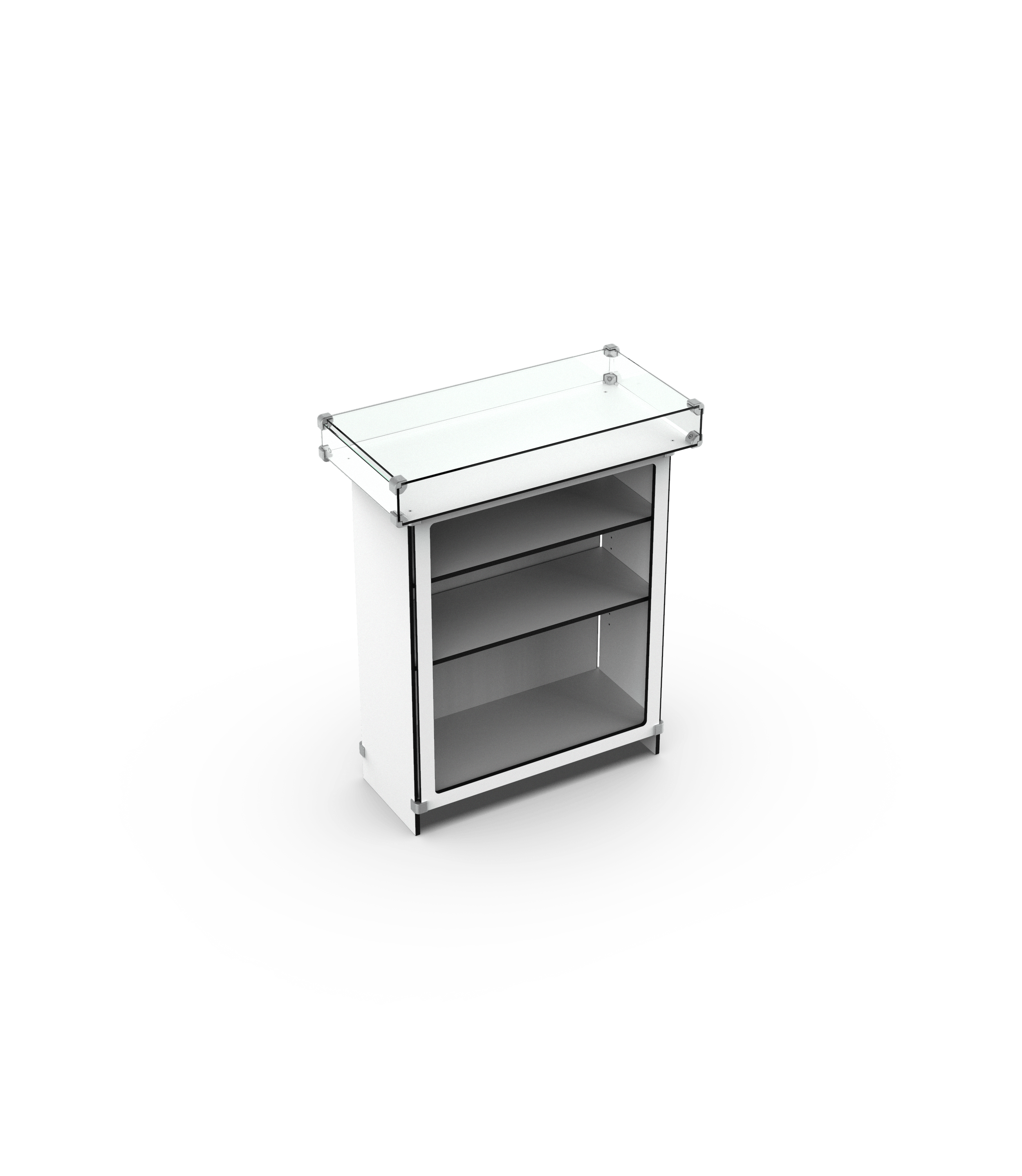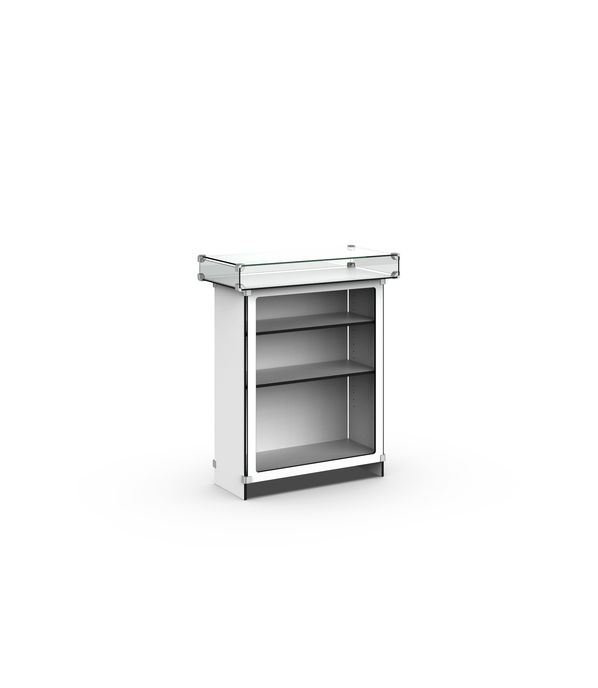 Darf es mehr sein? Halten Sie viele Produkte bereit dank der Glashaube und einem elegantem Korpus. Der Verkaufstisch II 800 zieht die Blicke auf sich und eignet sich perfekt für den persönlichen Verkauf.