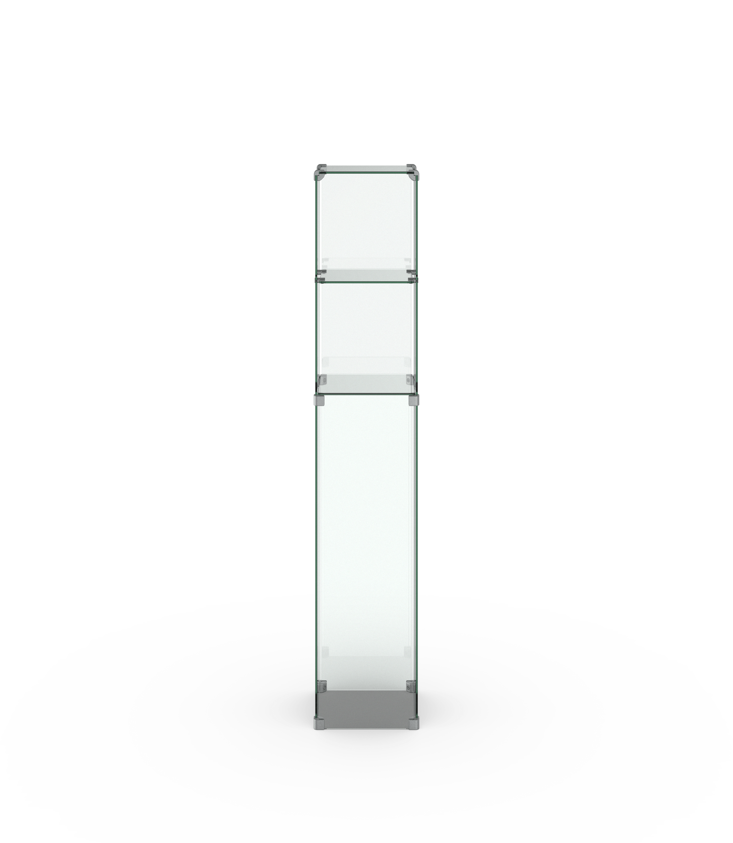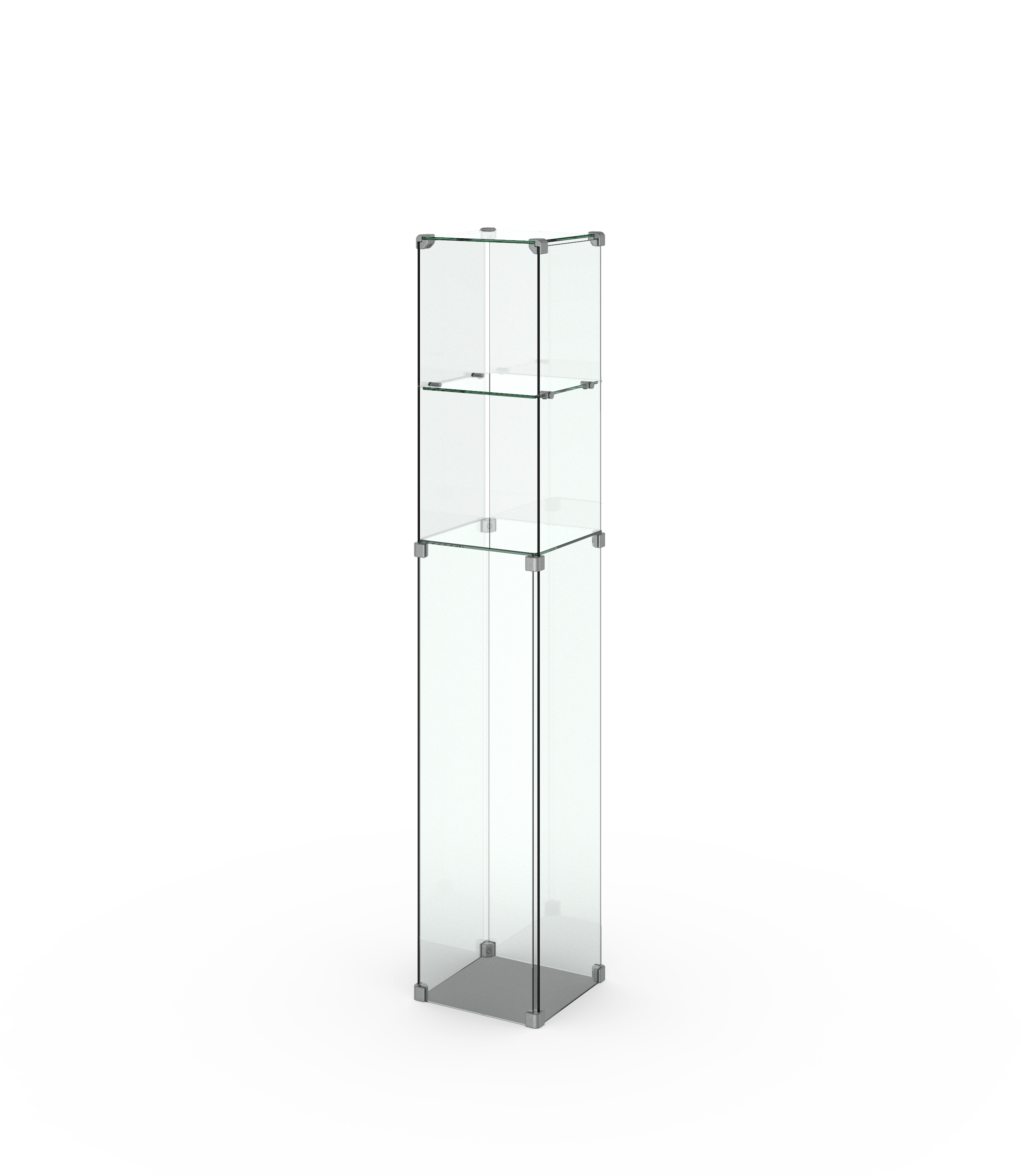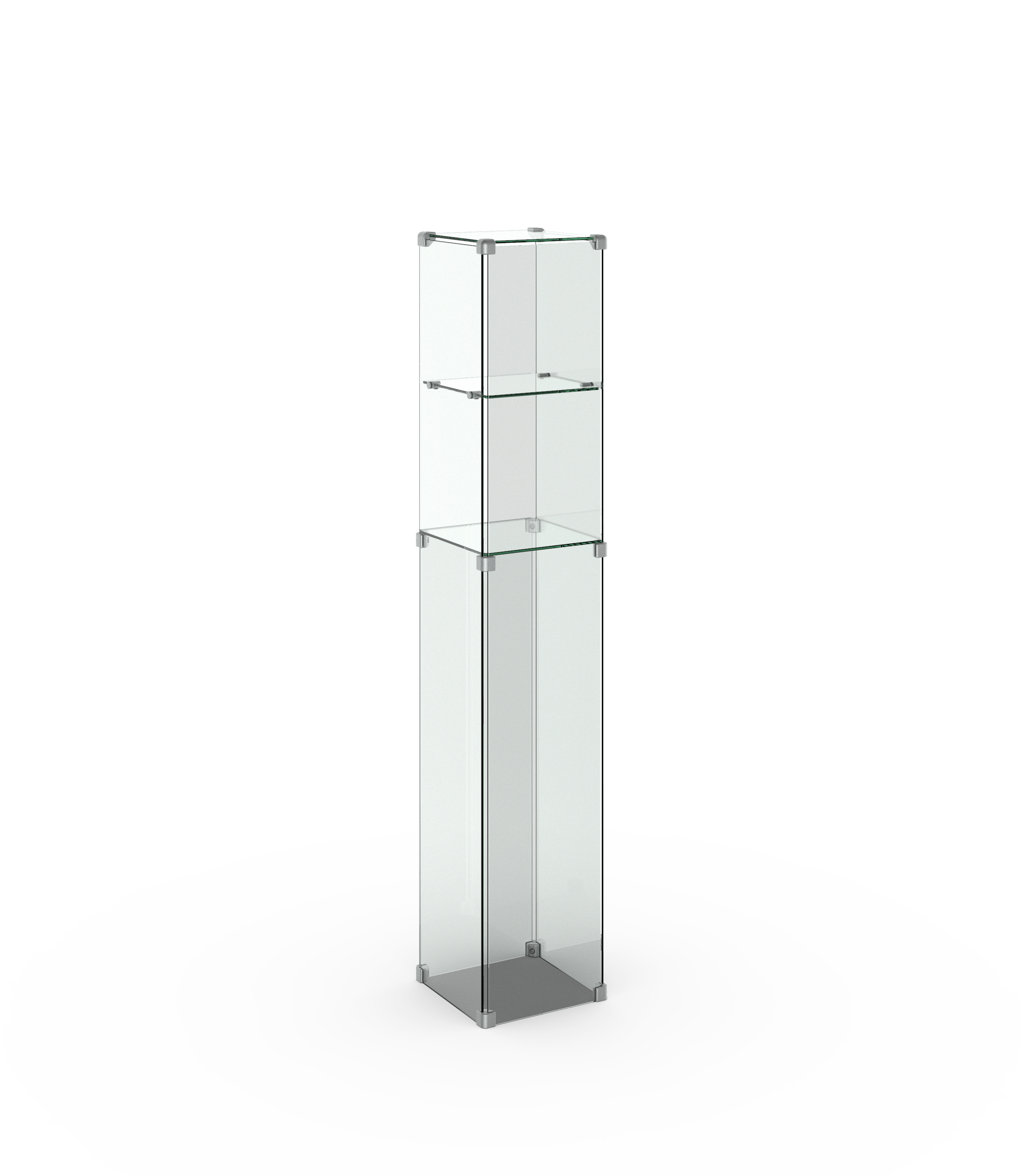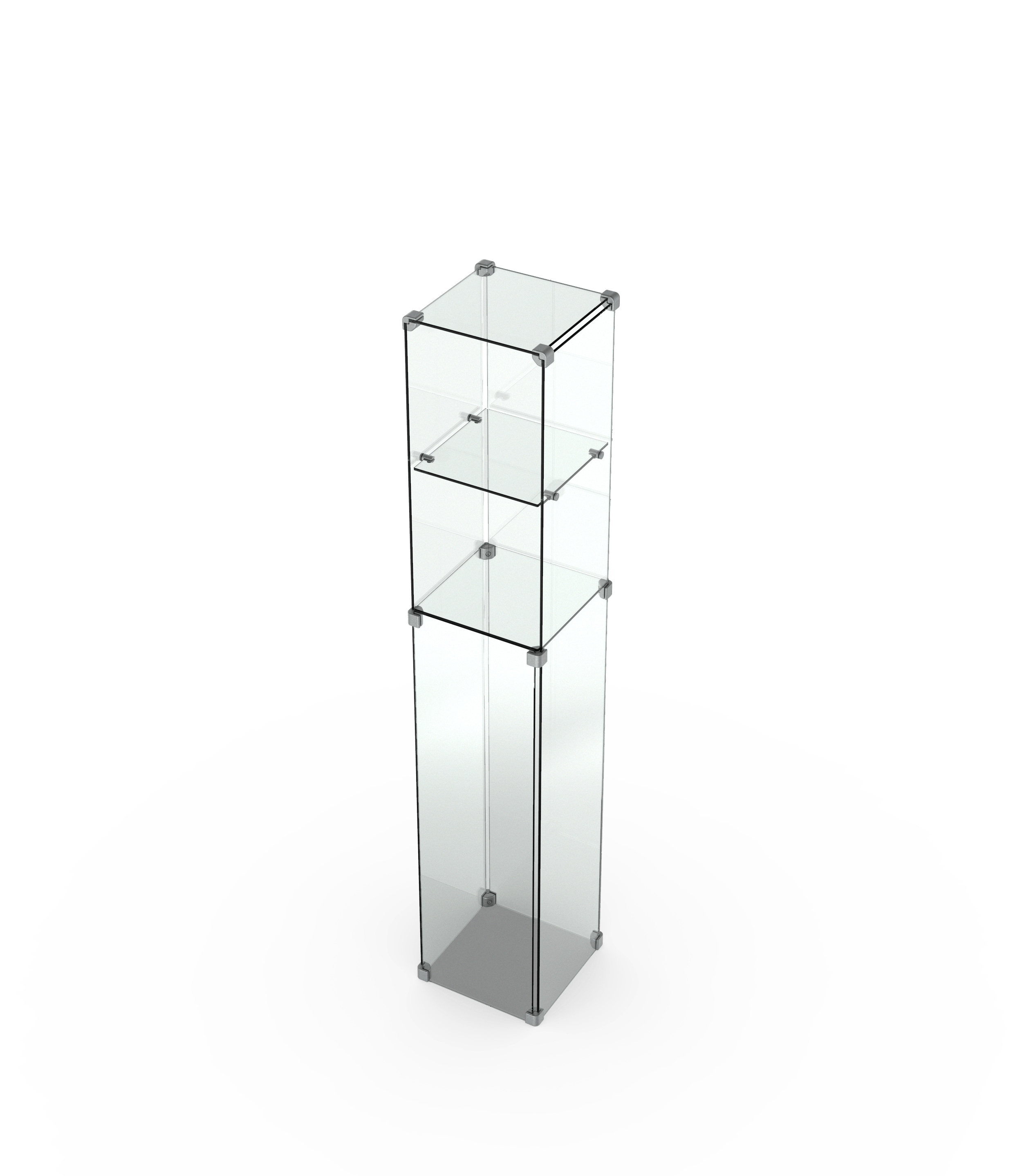 Die Glashaube besteht aus zwei oder drei Präsentationsebenen — konfigurieren Sie Ihre Produkthöhe. Ihre Ausstellungsstücke können Sie in der Säulenvitrine I 300 einfach positionieren und herausnehmen ohne eine Tür zu benutzen.