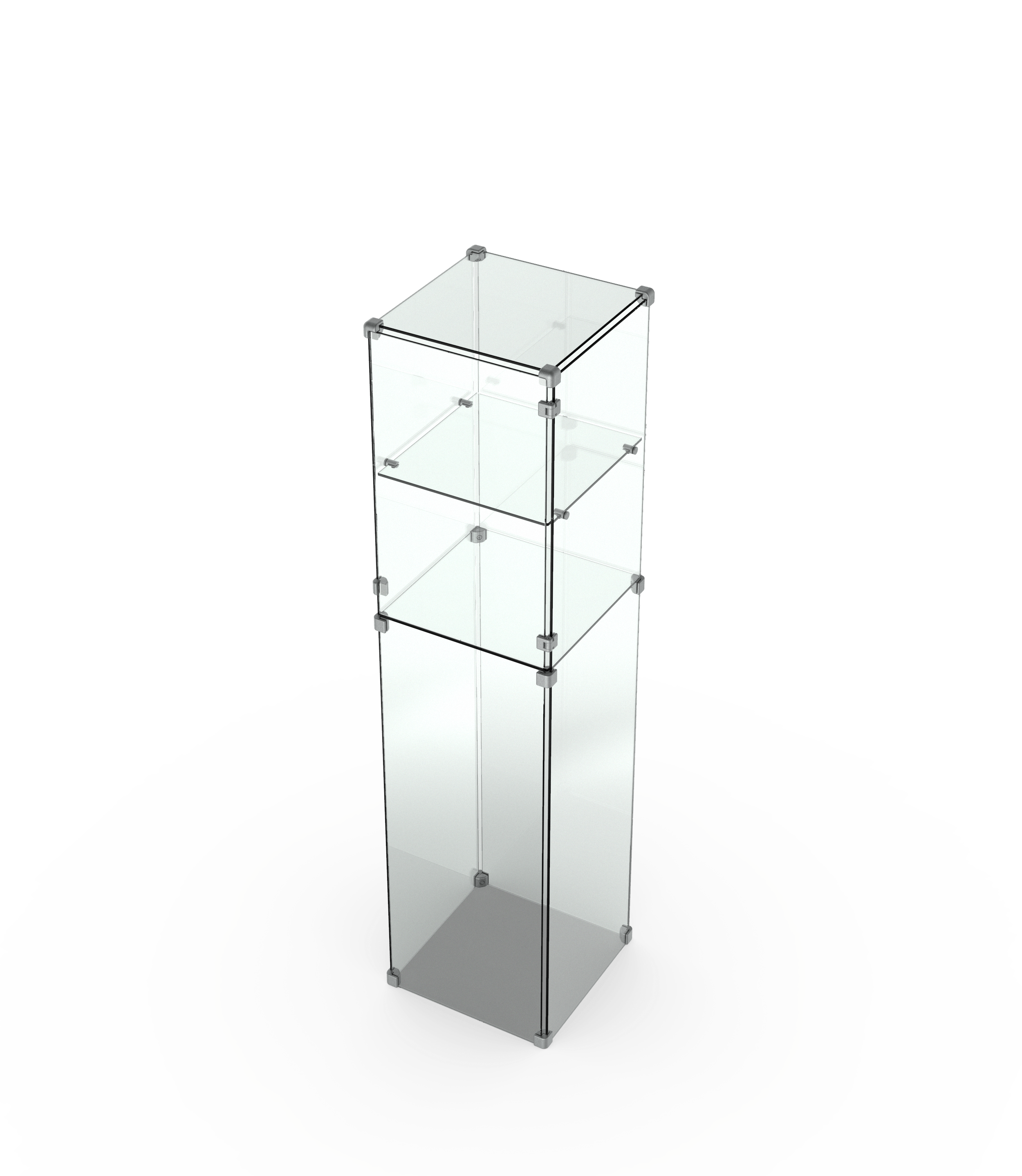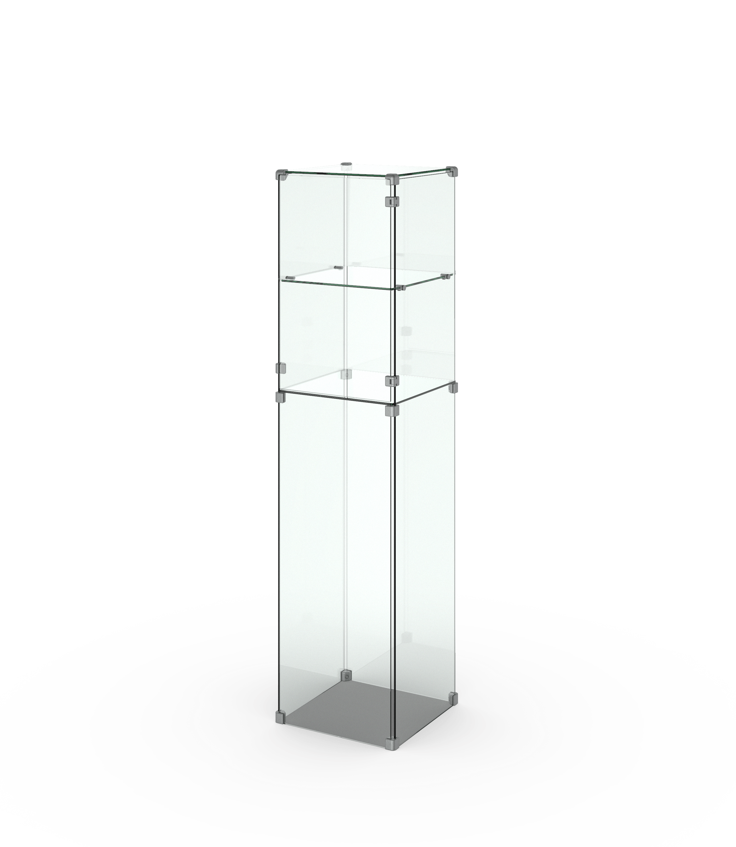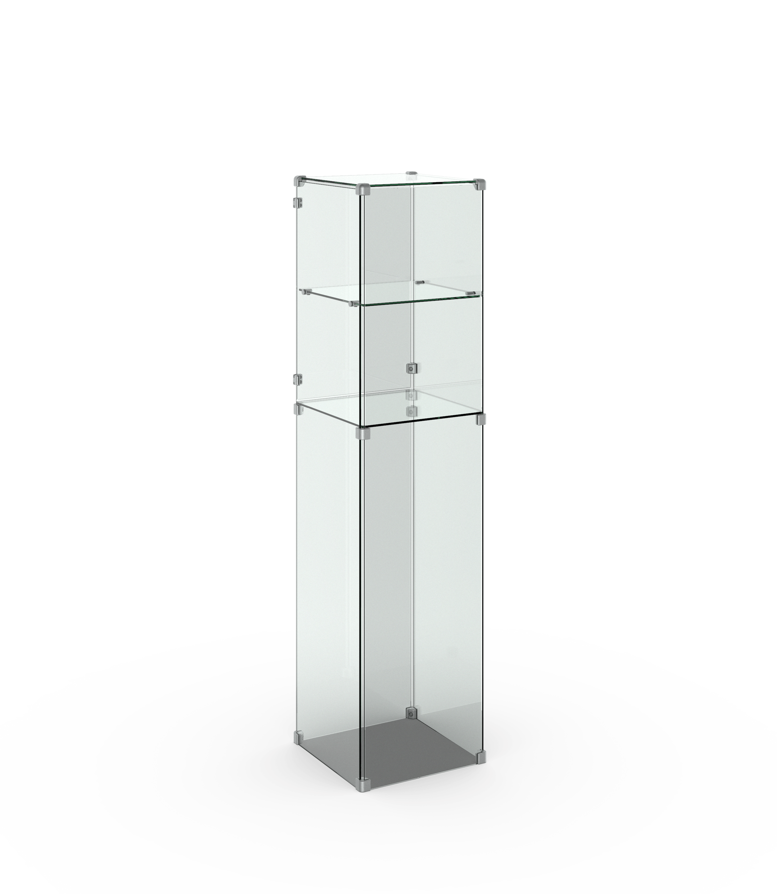Die Glashaube besteht aus zwei oder drei Präsentationsebenen — konfigurieren Sie Ihre Produkthöhe. Ihre Ausstellungsstücke können Sie einfach mithilfe einer Glastür im Produkt platzieren oder herausnehmen.